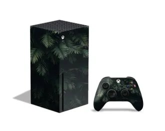 Вінілова наклейка на ігрову приставку Microsoft Xbox Series X та контролер із принтом зелене листя, арт.701005